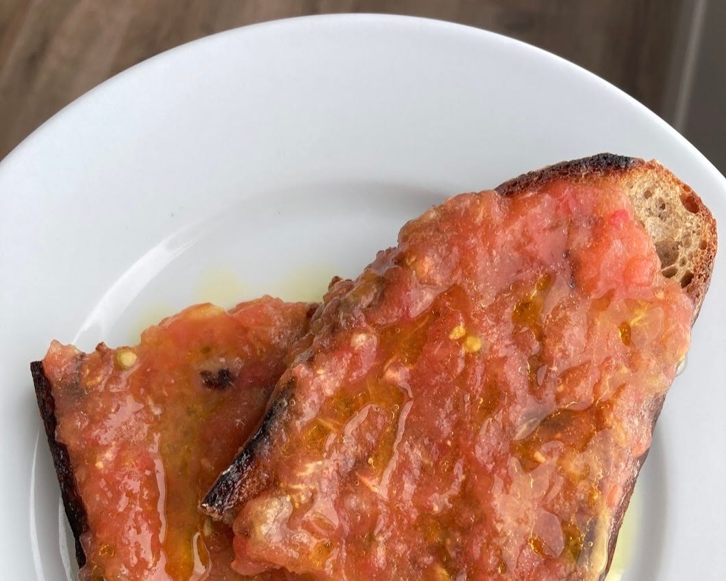 If the grated tomato seems too watery, throw it in a fine mesh strainer briefly to remove some of the liquid — and drink by itself, add to gazpacho, or use in a cocktail.
